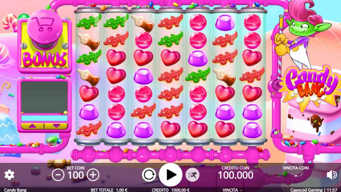 Per concludere, Candy Bang di Capecod è una slot leggera, colorata e con meccaniche piuttosto immediate. Con sistema a cascata, legato a moltiplicatori progressivi e un bonus Free Spin capace di regalare 30 giri gratis, Candy Bang mantiene il gameplay sempre vivo e vario, sia durante il gioco tradizionale che nelle varie funzioni bonus.