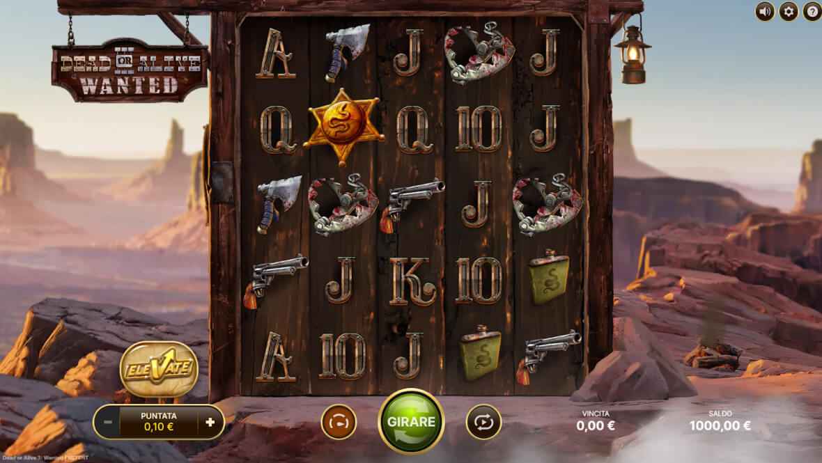 Fortunatissima e celebre saga che abbiamo incluso nella nostra lista delle slot che pagano di più, Dead or Alive 3 di Netent è il terzo capitolo della serie dedicata a western e colpi di scena da parte di un protagonista tutto pallottole e poca pazienza, impegnato a cacciare criminali.