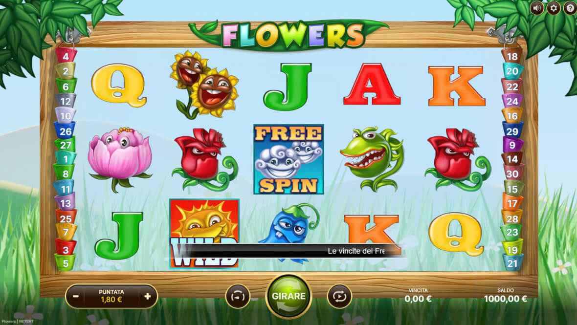 Flowers di Netent è una video slot a tema floreale con RTP del 96,32%, 30 linee di pagamento e free spin con moltiplicatore. Qui sopra puoi giocare gratis a Flowers slot demo, e se continui a leggere scoprirai i migliori siti di slot in cui trovarla!