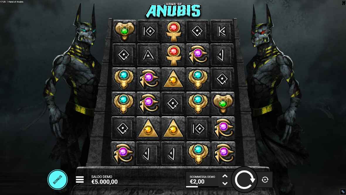 Una release non recentissima di Hacksaw Gaming, Hand of Anubis risale al 2022 e, grazie alla slot gratis qui sopra, ho potuto fare tutte le varie prove che mi servivano. Mentre giocavo ho raccolto cinque buone ragioni per farci un giro.