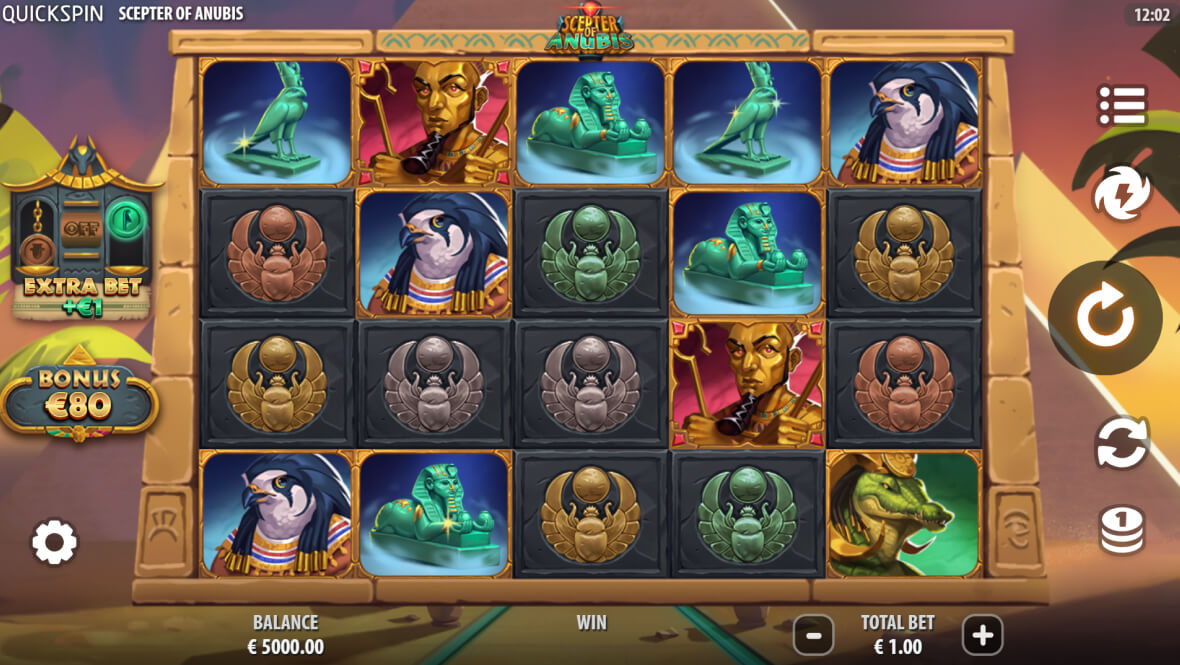 Scepter of Anubis è una video slot offerta da Quickspin che presenta 40 payline, un RTP del 96,06%, wild impilati, un super bonus e una funzione Nudge. Prova Scepter of Anubis slot demo qui sopra e leggi la recensione per i migliori siti di slot in cui trovarla!