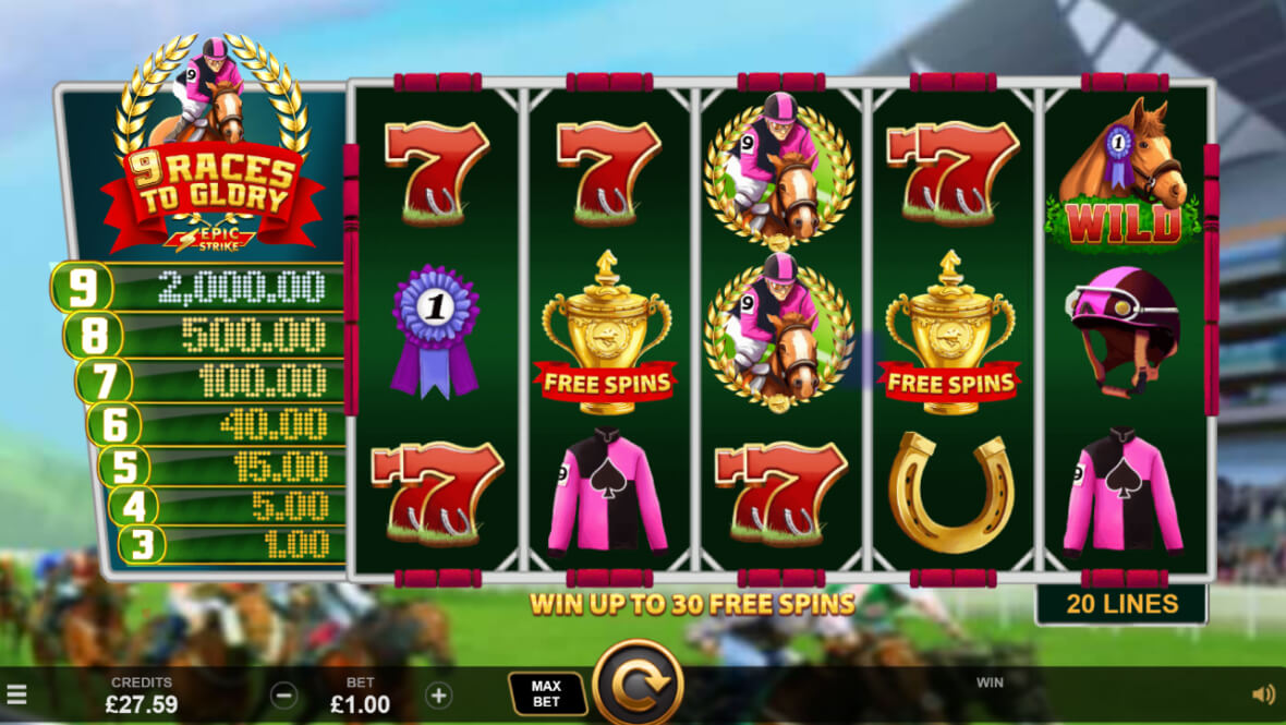 If you’re already familiar with the games 9 Masks of Glory or 9 Pots of Gold, then you’ll already feel like you’ve played 9 Races To Glory. It’s basically a re-make of those original games but with a horse-racing slot theme.