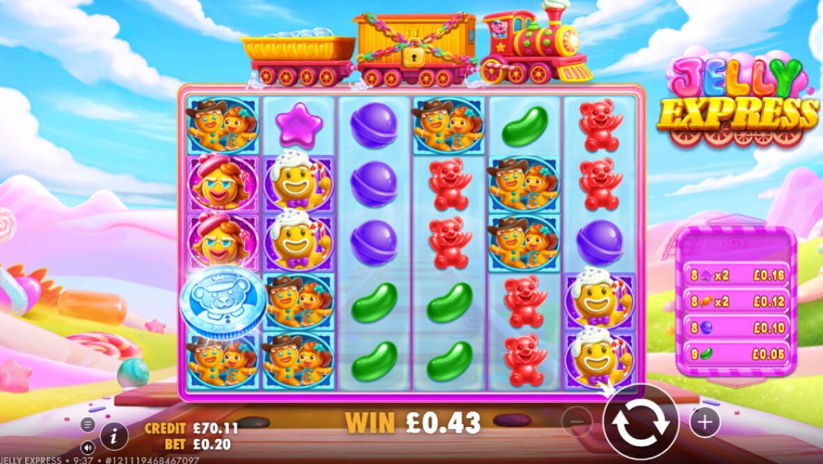 The Jelly Express RTP is 96.50% which is above average for a UK slot game and in-line with most Pragmatic Play games.